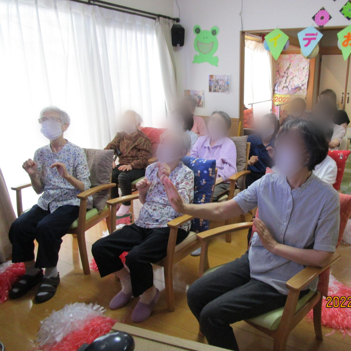 オンラインの体操レクリエーションやボールを使ったゲームで、筋力を維持していただくために機能訓練に力を入れています。