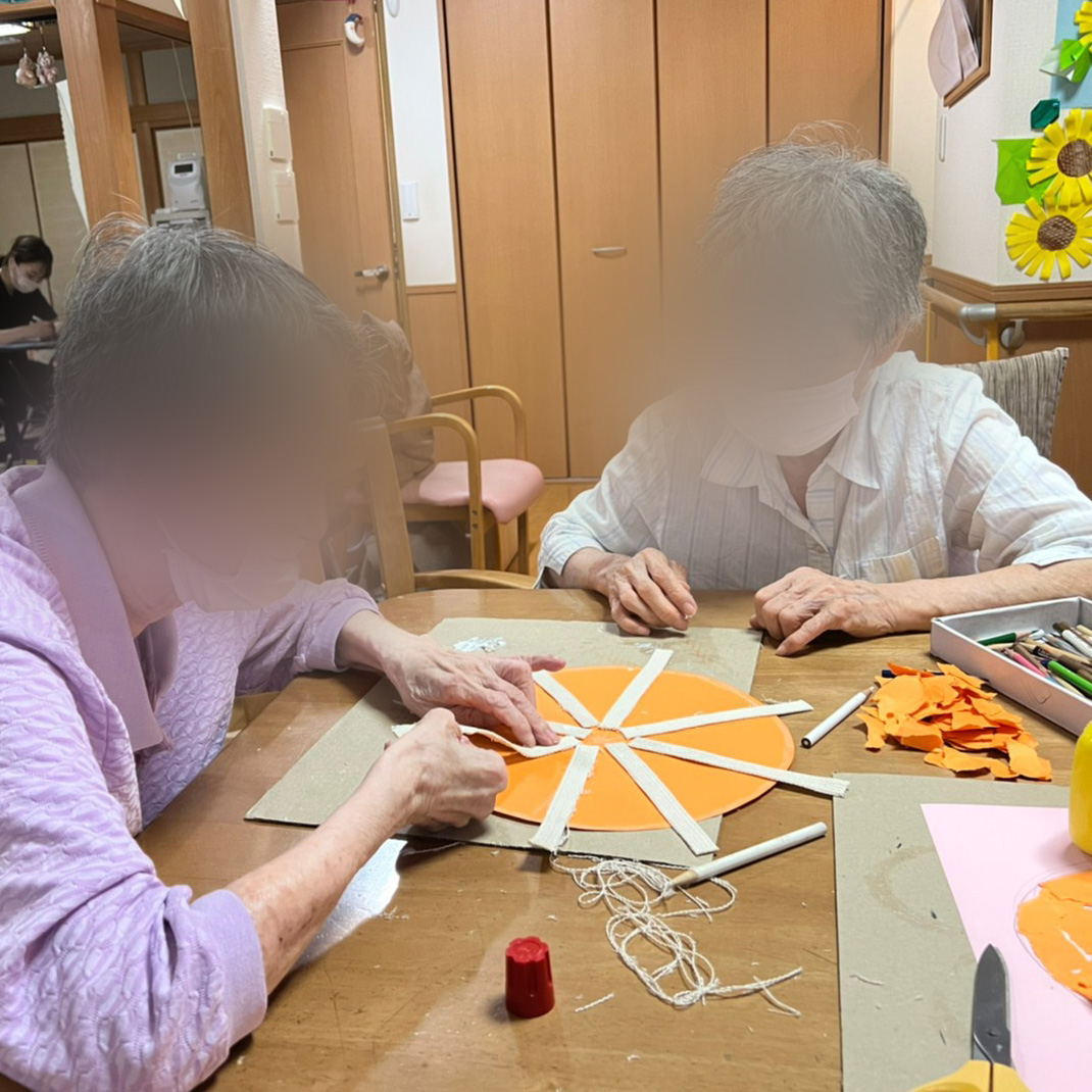 ひまわりの壁紙をご利用者様と一緒に作りました。快晴の青空と黄色のヒマワリでイキイキとした壁紙になりました。