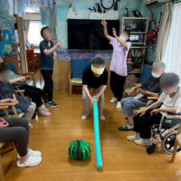 法被を着て童心に返り射的とすいか割を行いました。大声を出して盛り上がりました!!